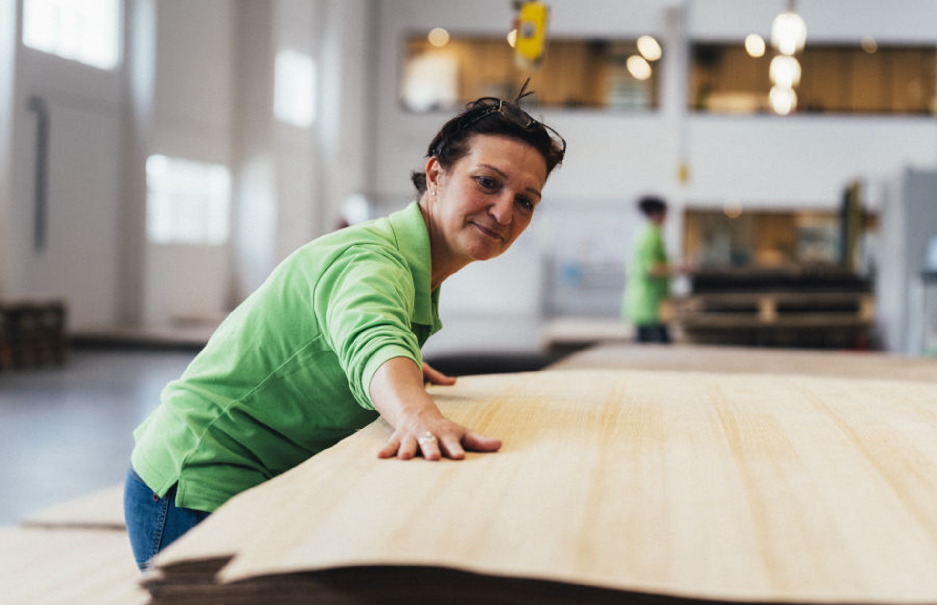 Chaque lot de placage est donc évalué individuellement en examinant ces caractéristiques du bois et est ensuite classé en différentes catégories de qualité. Rien que pour le chêne, il peut y avoir jusqu'à 50 qualités différentes. Les lots de placage passent ensuite par des opérations de découpe, de collage et d'assemblage. Puis, ils sont réévalués pour vérifier si leurs qualités techniques et esthétiques répondent aux exigences du client.