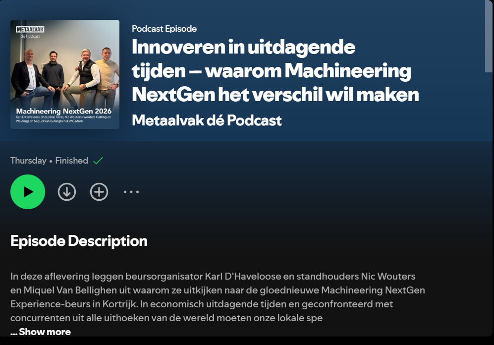 De tijd dat een vertegenwoordiger simpelweg een machine ‘over de schutting kieperde’, is definitief voorbij. Vandaag de dag koopt een klant geen brok metaal, maar spindeltijd, proceszekerheid en data. Mag dit een boodschap zijn voor tegelijk de 100 exposanten en alle bezoekers van de Machineering Nextgen Experience op 26 en 27 maart 2026 in Kortrijk Xpo, de as voor de Belgische metaalbewerking en industriële toelevering. We hebben het over de mindshift van ijzer naar intelligentie, namelijk de transformatie van de machinetoolsector.